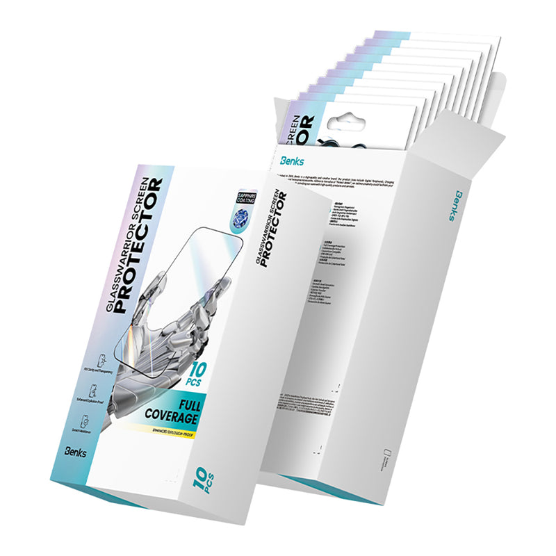Benks Glass Warrior Safir Coating Ekran Koruyucu, telefonunuzun ekranını korumak için tasarlanmış en son teknolojiye sahip bir üründür. 10'lu paket halinde toptan alışlarınız için kutulu hale getirildi. Crystacle™ safir-benzeri kaplama teknolojisi ile üretilen bu ekran koruyucu, sadece darbelere ve çizilmelere karşı mükemmel bir direnç sağlamakla kalmaz, aynı zamanda dokunuşlarınızda ve ekranınıza her baktığınızda lüks bir his sunar. Doğanın saf gücü ve ince işçiliği, bu ekran koruyucuda hayat buluyor.