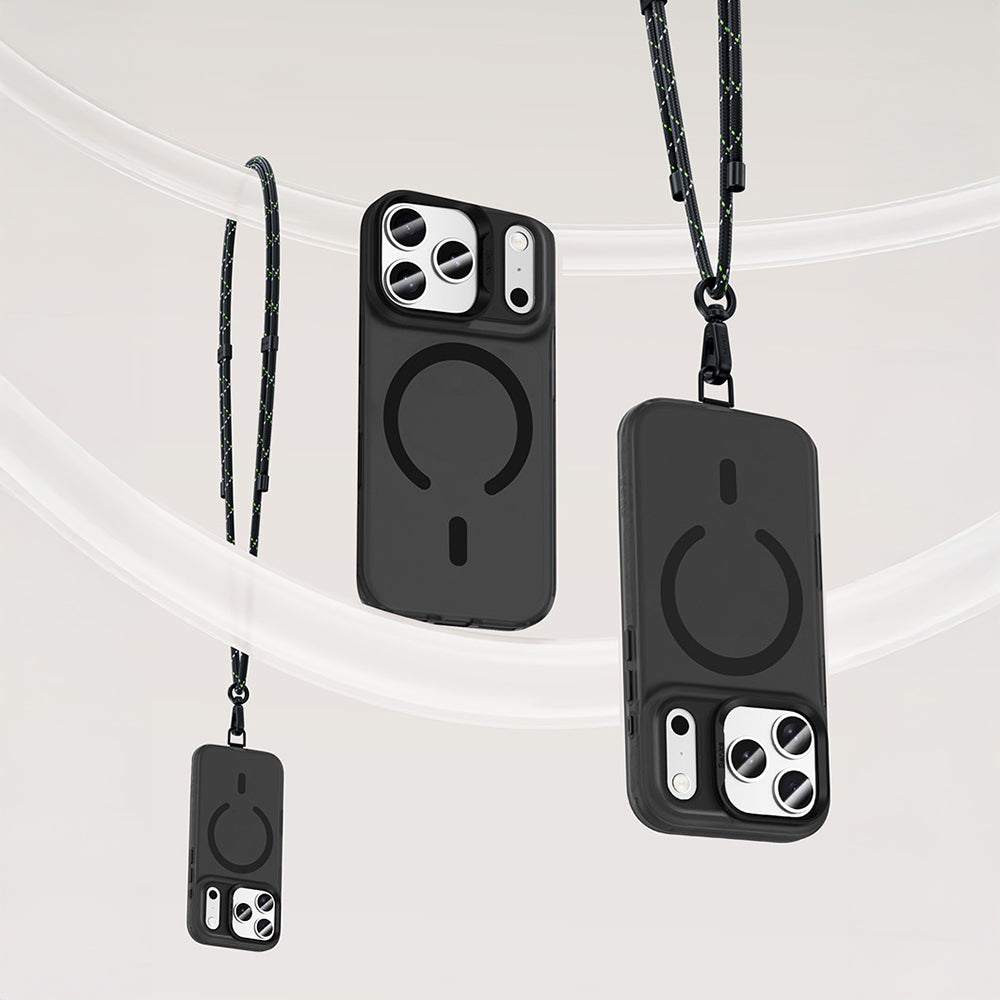 Yerleşik güçlü manyetik halka, M-Safe aksesuarlarla tam hizalanma sağlar. Kablosuz şarj esnasında cihazınızı sabit tutarak enerji aktarımını maksimum verimlilikte sürdürür. Alt kısımda yer alan askı yuvası ise kayış veya askı ipi ile pratik kullanım olanağı tanır.