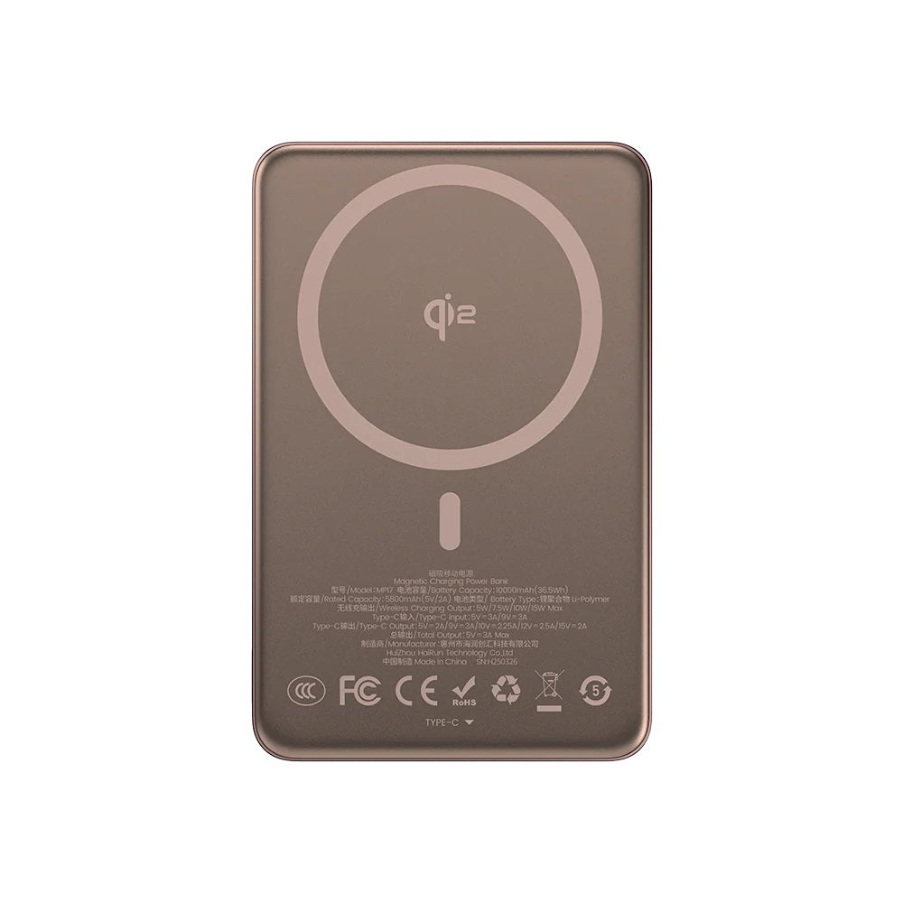 10000mAh kapasiteyle donatılmış bu model, telefonunuzu 2–3 kez tam şarj edebilir. Üstelik hem kablosuz hem de kablolu (Type-C PD çıkışlı) cihazları aynı anda şarj edebilir. Akıllı güç yönetimi çipi sayesinde aşırı ısınma, kısa devre ve aşırı voltaj gibi durumlara karşı tam güvenlik sağlar. Uzun bir gün, kalabalık bir toplantı veya seyahatte şarj derdi yaşamamak için ideal bir çözüm.